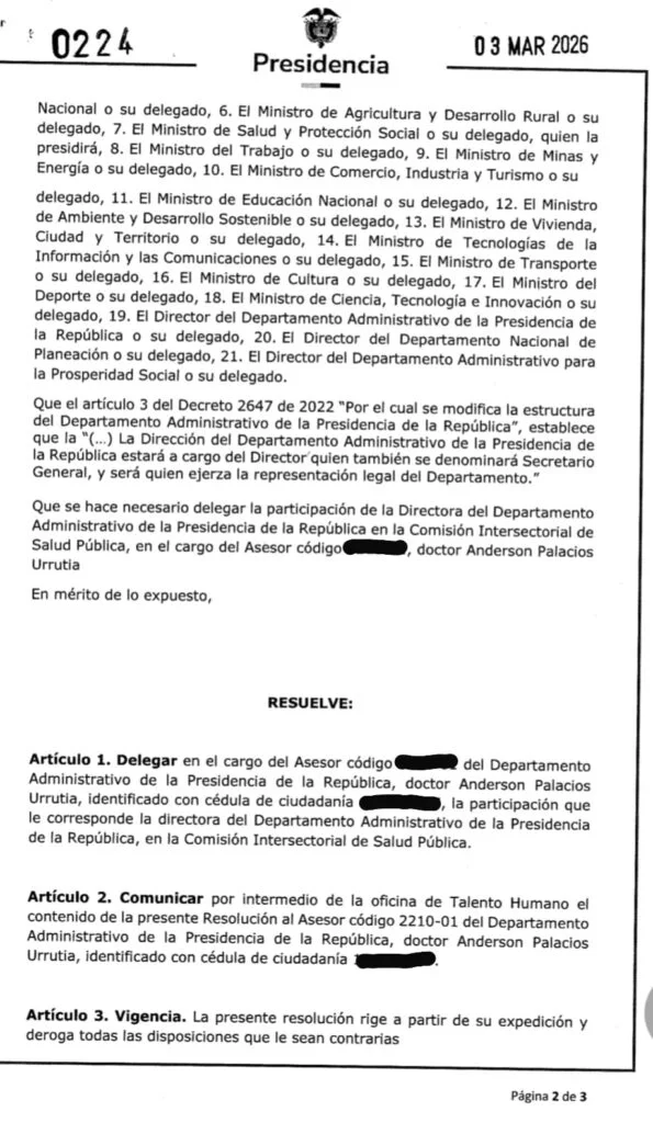 Para este efecto la Directora General del Departamento Administrativo de la Presidencia de la Republica, confió esta responsabilidad al chocoano Anderson Palacios Urrutia, quien desde hace poco tiempo se viene desempeñando como asesor de este departamento y que mediante resolución 024 del 03 de Marzo, asumirá este nuevo reto profesional.