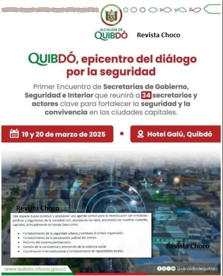 Los próximos 19 y 20 de marzo, Quibdó se convertirá en el epicentro del diálogo y la acción en torno a la seguridad y convivencia en las ciudades capitales del país. La Asociación de Ciudades Capitales ha confirmado la realización de este importante encuentro, que reunirá a 34 secretarios de Gobierno y del Interior, así como a actores clave en la gestión pública. En la misiva enviada al alcalde Rafael Bolaños, se detalló que la capital chocoana será la sede de este evento que busca fortalecer las estrategias de seguridad urbana en el contexto de los retos que enfrentan las ciudades.