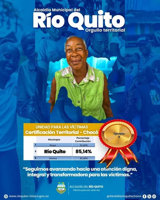 Bajo el liderazgo del Alcalde Dr. Eulises Palacios Cabrera, este resultado es fruto del trabajo articulado entre la Oficina de Atención a Víctimas y la Secretaría de Gobierno. El alcalde reafirma su propósito de fortalecer la atención integral, demostrando que con dedicación, esfuerzo y trabajo en equipo, Río Quito avanza hacia un municipio más justo, incluyente y solidario.