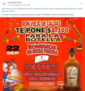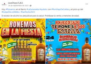 La version del representante de la empresa LicoChocó constrasta con la realidad que ellos mismos publicitaban de las festividades y del empuje que necesitaba la marca platino en los diferentes eventos pues como se puede constatar todas las consideraciones estaban direccionadas a la marca Ron Viejo de Caldas.
