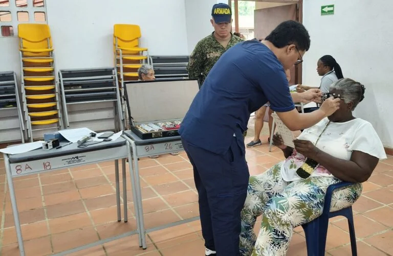 La Institución Naval dispuso del buque ARC “Bahía Solano” para transportar a 46 voluntarios hasta esta zona rural chocoana, que ha sido enormemente afectada por la reciente ola invernal que vive el país. Durante la jornada, se brindaron atenciones en medicina general, odontología, nutrición, fonoaudiología, optometría, pediatría y psicología, las cuales beneficiaron a 1.239 personas.